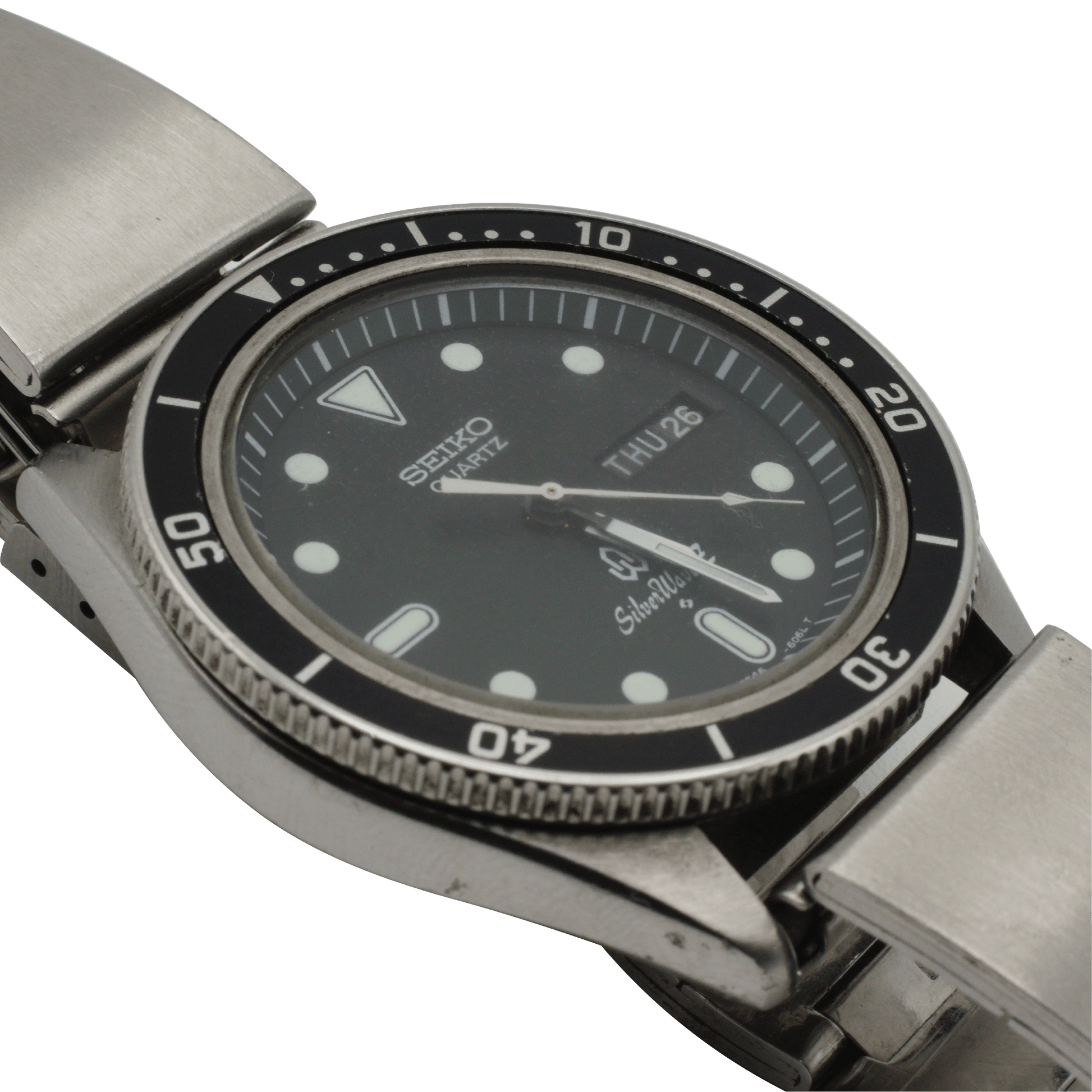 | 商品の特徴 | 再値下しますSEIKO クォーツ腕時計 SilverWave Zブラック。再値下しますSEIKO クォーツ腕時計 SilverWave Zブラック。1978 Seiko Quartz SilverWave Z 7546-6050 – TokeiMedic。25000円→20000円→19000円SEIKO Silver Wave Zブラック文字盤のSEIKOクォーツ腕時計、曜日・日付表示機能付き。表面にはほとんど傷が無く綺麗です。電池も新しく変えたばかりです。バンドもSEIKOのオリジナルです。使用していましたのでそれなりの経年の細かいキズはありますが美品の部類でしょう。- ブランド: SEIKO- モデル名: Silva Wave Z- クォーツタイプ: クォーツ- 曜日表示: あり- 日付表示: あり- 文字盤色: ブラック- バンド素材: ステンレススチールご覧いただきありがとうございます。。2025年最新】セイコーシルバーウェーブzの人気アイテム - メルカリ。⭐極美品⭐Paul Smith チャーチストリート クロノグラフ 腕時計 黒。NAVAL WATCH 黒青GMT ナバルウォッチ。【希少】セイコー ドルチェ クォーツ 1Pダイヤ 5E31-5A90 ゴールド。SEIKO プレザージュ SRPK61JC/SARY235海外モデル。H76522931 ハミルトン カーキ アビエーション パイロット パイオニア | ||