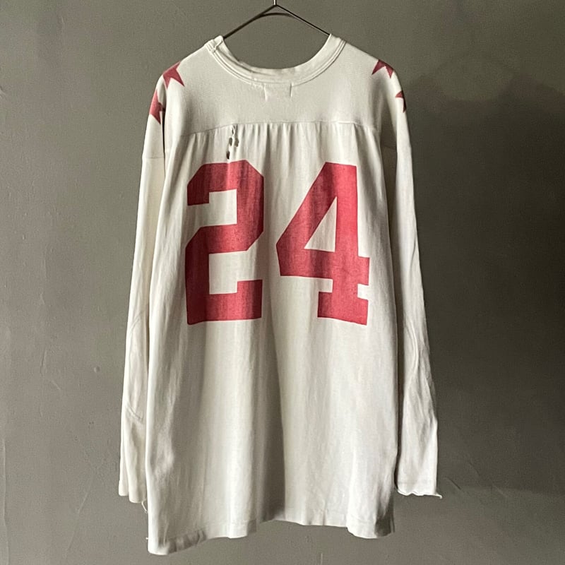| 商品の特徴 | 50s Lowe&campbell football tee | sui & shara。60's LOWE&CAMPBELL レーヨン フットボールTシャツ ヴィンテージ。il_fullxfull.4112964870_gya8.jpg。アメリカの老舗アスレチックブランド「LOWE & CAMPBELL」製、1950年代頃のヴィンテージフットボールTシャツの出品です。*LOWE & CAMPBELL ATHLETIC GOODS(ロウ&キャンベル アスレチックグッズ)**は、20世紀初頭〜中期のアメリカの老舗スポーツ用品メーカーです。【概要】•創業:1910年代頃(諸説あり)•本拠地:ミズーリ州・カンザスシティ(Missouri, Kansas City)•主な製品:•フットボールシャツ•スウェット・ユニフォーム•運動用具・用衣などアスレチックウェア全般【特徴】•1940〜60年代のアメリカ製スポーツウェアの代表的ブランドのひとつ•当時の高校や大学、アスレチッククラブなどの実用用具として広く採用•タグに「LOWE & CAMPBELL ATHLETIC GOODS」や「L&C」ロゴが入り、年代でデザインが異なる•50sヴィンテージのTシャツやスウェット、レタードアイテムはコレクター人気も高い •ラッセル(Russell)やスプリングフォード(Spring Ford)などと並ぶスポーツ系ヴィンテージの定番ブランド● 特徴・希少な50年代製・クラシックなナンバリング「77」プリント(ラバープリント)・フラットシーム仕様・エルボーパッチ付きの本格仕様・雰囲気抜群の美フェード・USA製・サイズ表記:42(L相当)● 状態目立つ汚れや大きなダメージはなく、ヴィンテージとしては比較的良好なコンディション。フェード感・アタリも非常に良く、雰囲気重視の方におすすめです。● サイズ実寸(平置き)肩幅 ラグランのため計測不可身幅:約49cm着丈:約67cm袖丈(脇下から):約49cm※多少の誤差はご了承ください⸻ヴィンテージTならではの風合いが存分に楽しめる逸品です。コレクションにも、雰囲気系スタイリングにも◎お好きな方、この機会にぜひご検討ください。#ヴィンテージ #フットボールt。楽天市場】50s USA製 EMPIRE フットボール Tシャツ メンズ L。ダブルアールエル グレー ヘンリーネックシャツ2024。Chrome Hearts ブラック長袖カットソー。トップス Supreme SpongeBob SquarePants L/S Tee。RICK OWENS baseball tee 2点セット。UMBRO × Diaspora skateboards × BEAMS | ||