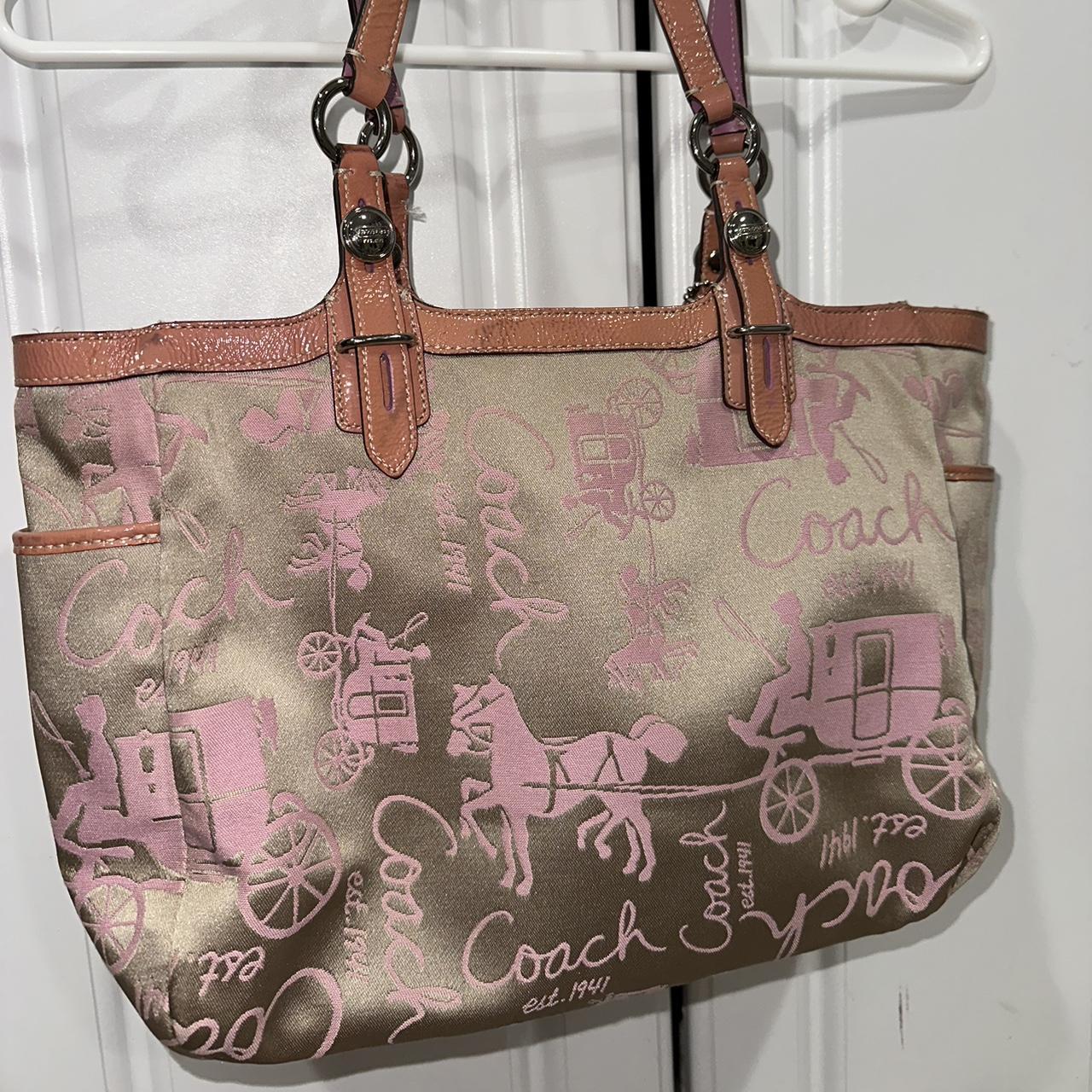 バッグ COACH Horse and Carriage Pink Tote Bag Vintage Coach Tote Shoulder Bag Women's Colorfully Horse