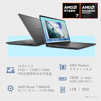 - ノートPC > Windowsノート本体 > Windowsノート本体 DELL inspiron14 5445 Ryzen7 8840U 1TB Inspiron DELL デル ノートパソコン 14 5445 14型FHD+/ Ryzen 7