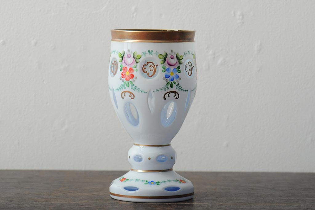Bohemia ボヘミア ハイエナメル 乳白被せ 花模様 花瓶 フラワーベース Bohemia ボヘミア ハイエナメル 乳白被せ 花模様 花瓶 フラワー
