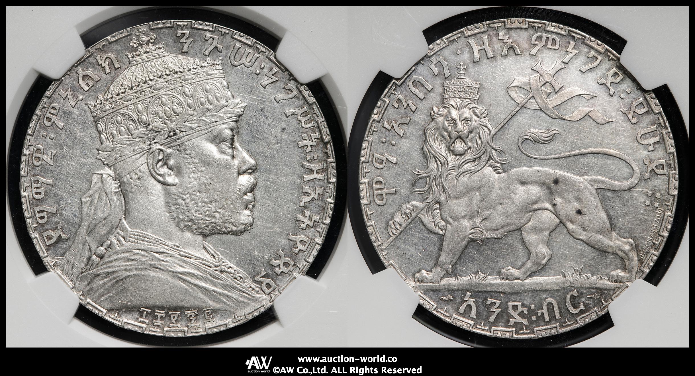 - 美術品・アンティーク・コレクション > コレクション > プ*須様 1892年エチオピア 1 BIRR銀貨 クラウン銀貨 皇帝Meneli 1892 ETHIOPIA Emperor Menelik II I LION of JUDEA Old Silver
