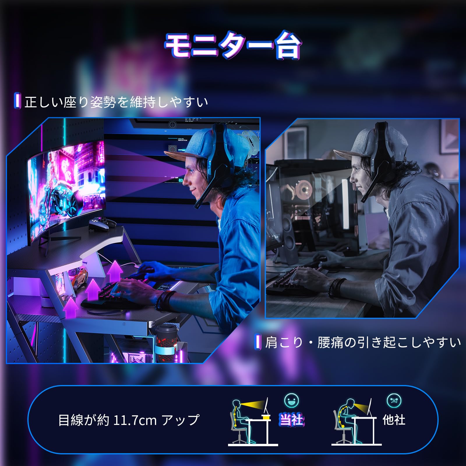- 机・テーブル > パソコンデスク > AODK ゲーミングデスク パソコンデスク ラック&コンセント付き 幅100cm Amazon | AODK ゲーミングデスク パソコンデスク コンセント&LED